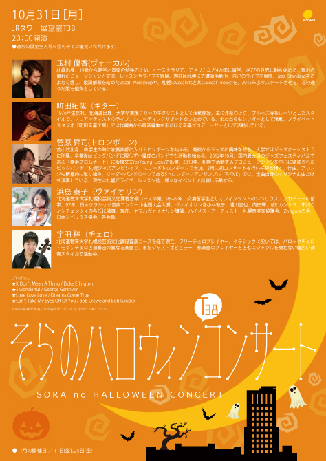 玉村 優香(ヴォーカル)/町田拓哉(ギター)/菅原 昇司(トロンボーン)/浜島 泰子(ヴァイオリン)/宇田 梓(チェロ)